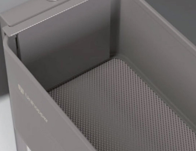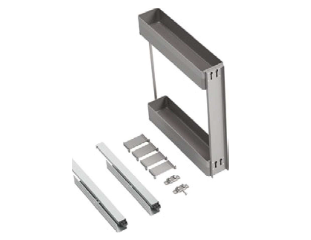波蘭五金品牌 3D橫條紋鋁合金側牆+食品級認證止滑墊 型號:GHE47150 適用櫃寬:150 (mm) 產品+滑軌:寬108 x 深470 x 高550 (mm) 滑軌固定方向:左側板 標配:瓶格片x4只 總承重:15 KG