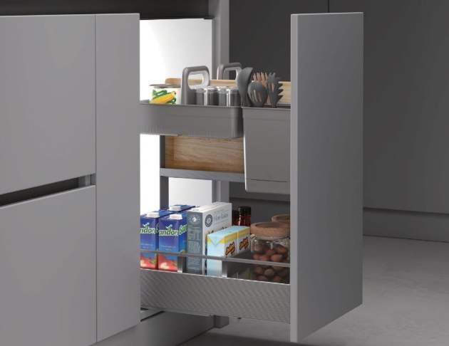 波蘭五金品牌 3D橫條紋鋁合金側牆(含玻璃)+食品級認證止滑墊 型號:GHE48330 適用櫃寬:300 (mm) 產品+滑軌:寬264 x 深462 x 高516 (mm) 型號:GHE48340 適用櫃寬:400 (mm) 產品+滑軌:寬364 x 深462 x 高605 (mm) 總承重:15 KG